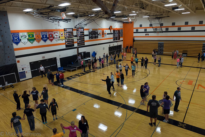 Here Dave works with NexGen-SD dancers at a North Fon du Lac teachers Team Building event.